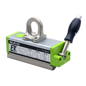 Myös tässä mallissa kytkennän ja irrotuksen vipua käännetään ainoastaan 90 astetta, ja vivun liike on rekyylitön sekä itselukittuva. Magneetin muoto ansiosta FX-P magneetilla voi nostaa max 80°C asteista kappaletta.